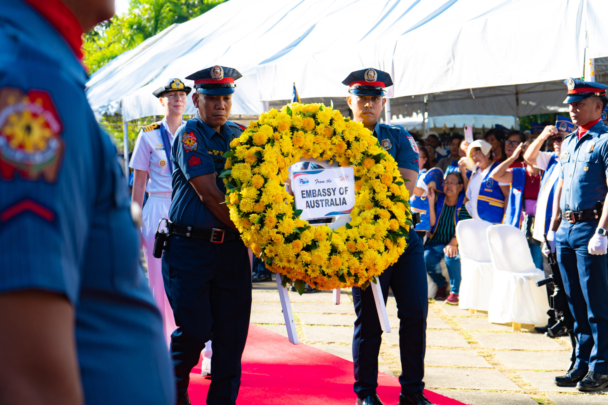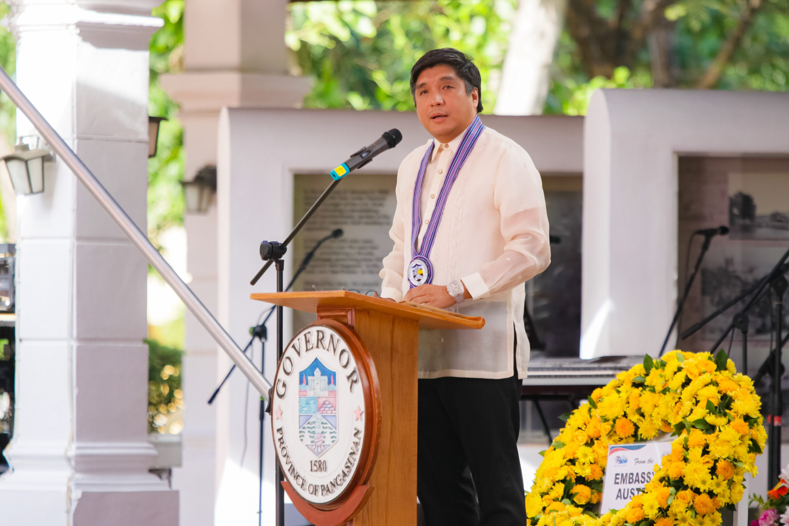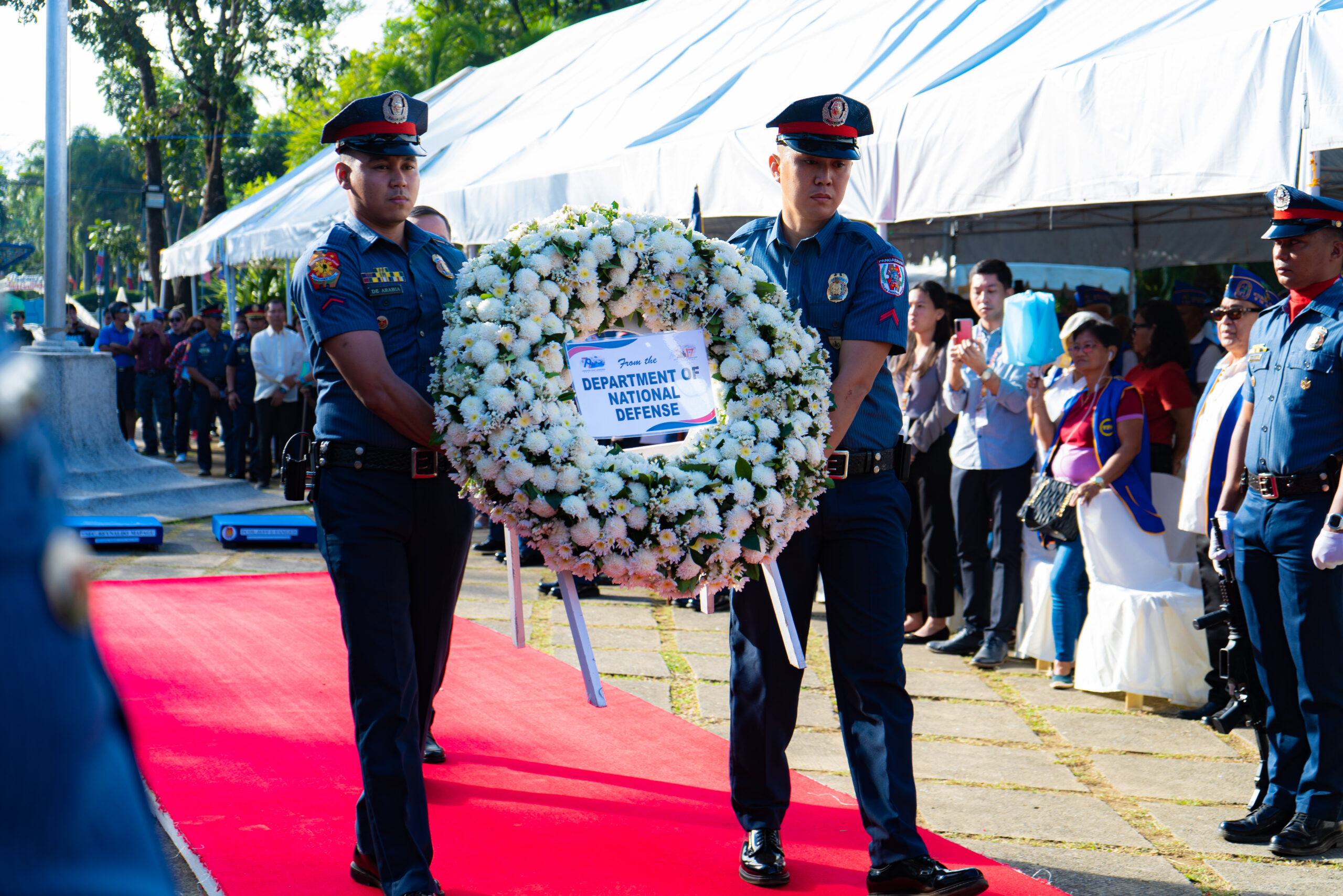 The program formally started with a thanksgiving mass presided over by Archbishop Fidelis Layog, followed by the wreath laying ceremony with WWII veteran Mr. Hospicio Mallari, Commander Emma McDonald-Kerr (Defense Attaché of the Australian Embassy in the Philippines representing Her Excellency Ms. Hae Kyong Y), Captain Noel Corpus (Naval Attaché of the Embassy of the United States of America representing Her Excellency Ms. MaryKay L. Carlson), Major PCOL Jeff Fanged (Provincial Director of the Pangasinan Police Provincial Office), MGEN Romeo Alamillo, Governor Ramon V. Guico III, and USEC Reynaldo Mapagu (Administrator of the Philippine Veterans Affairs Office representing Secretary of National Defense Gilberto Teodoro Jr.).